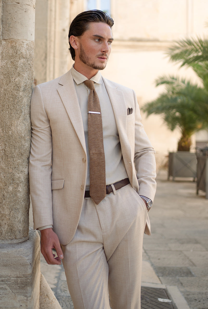 The Malibu Tie Sets are a coordinated accessory collection available in Beige, Sky, and Forest Green. Each set includes a tie, matching pocket squa...