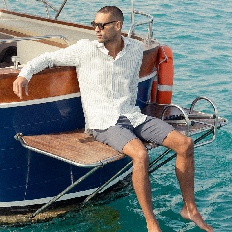 The Alberi White Stripe Shirt is crafted from 100% linen, offering a lightweight, breathable handle with natural texture and character. Designed in...