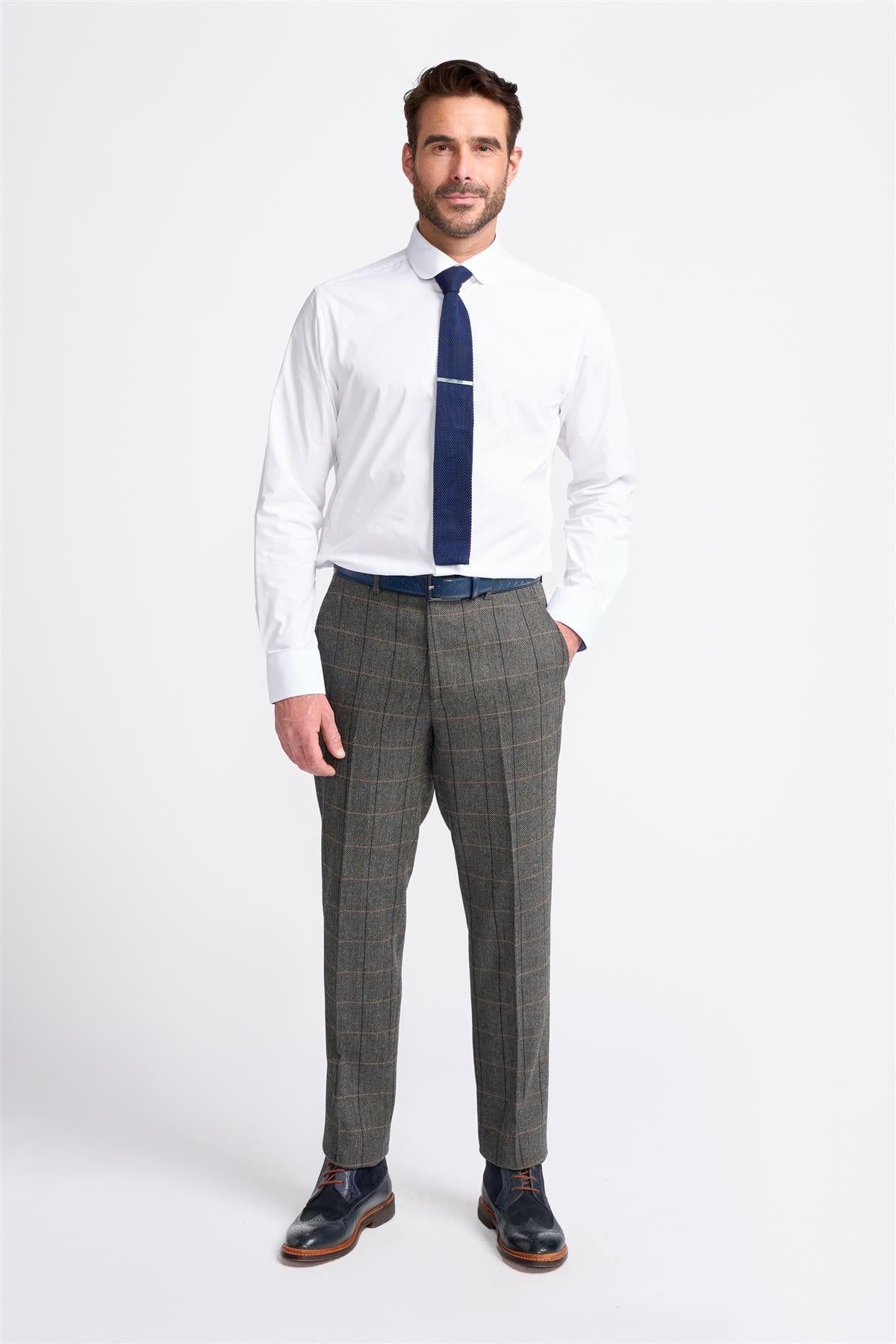 Elevate your style with the Albert Grey Tweed Check Trousers. Showcasing a sophisticated check pattern and a slim fit, these trousers bring heritage charm to modern menswear. Perfect for formal or casual occasions, they embody timeless elegance with a contemporary twist, ideal for the discerning gentleman's wardrobe.