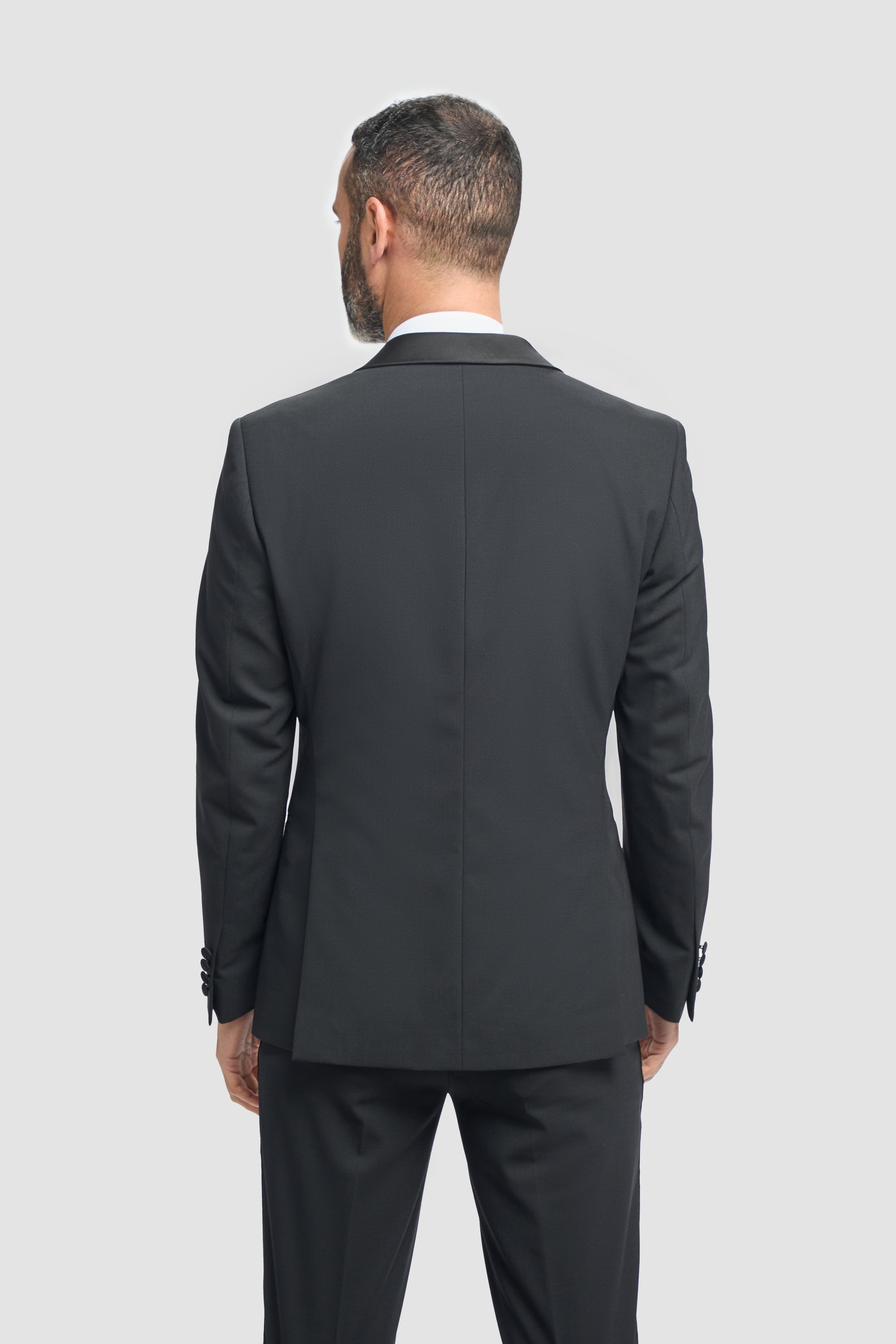 The Aspen Tux redefines formal elegance with its sleek shawl collar and single-button closure. Crafted from a wool blend, this fully lined tux features flat pockets, a boat-shaped chest pocket, and four kissing cuff buttons. Tapered side seams ensure a sharp, contemporary fit that accentuates the wearer’s silhouette. Perfectly tailored, it’s the ultimate choice for the modern gentleman’s black-tie wardrobe. The Aspen Tux trousers feature a tailored fit, satin side stripes, and a sharp crease for timeless formal sophistication.