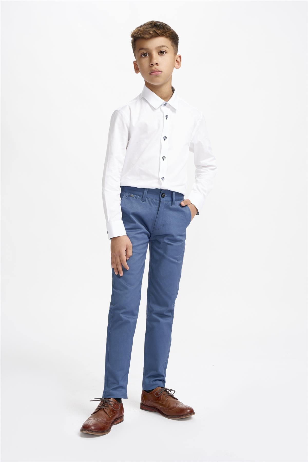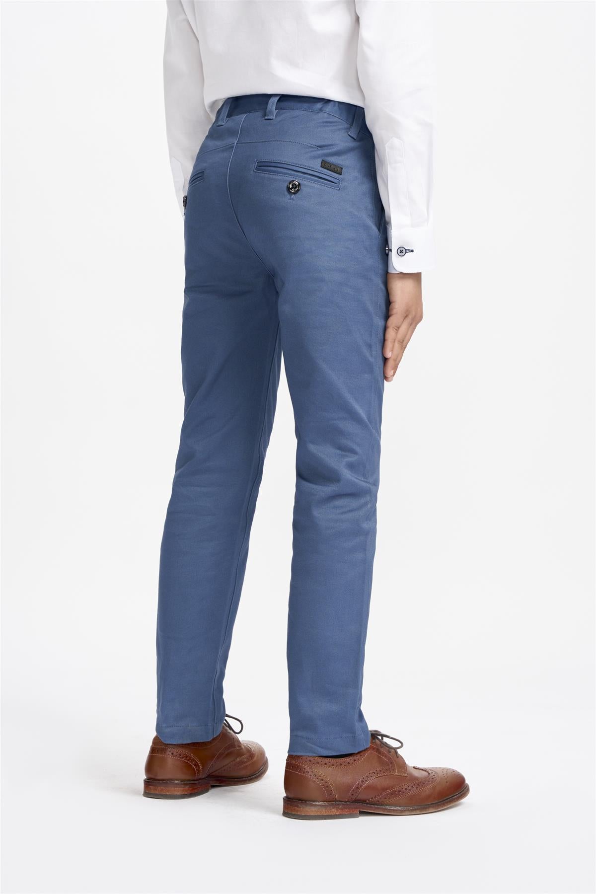 The model is wearing a size 23 inch waist and usually fits age 7 trousers.