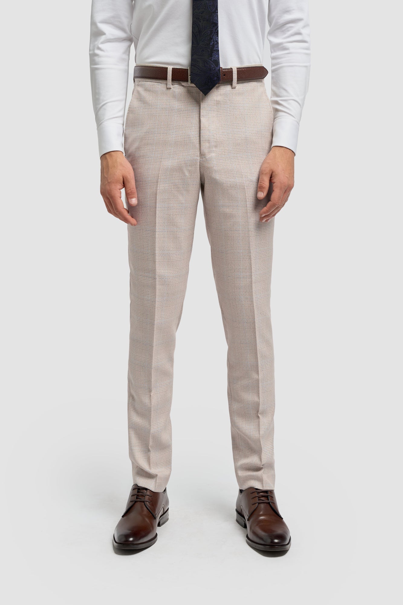 Add a touch of elegance to your wardrobe with the Caridi Beige Check Trousers. Featuring a refined check pattern and slim fit, these trousers exude timeless sophistication. Perfect for summer weddings or smart-casual events, they offer a polished yet relaxed style for the modern gentleman.