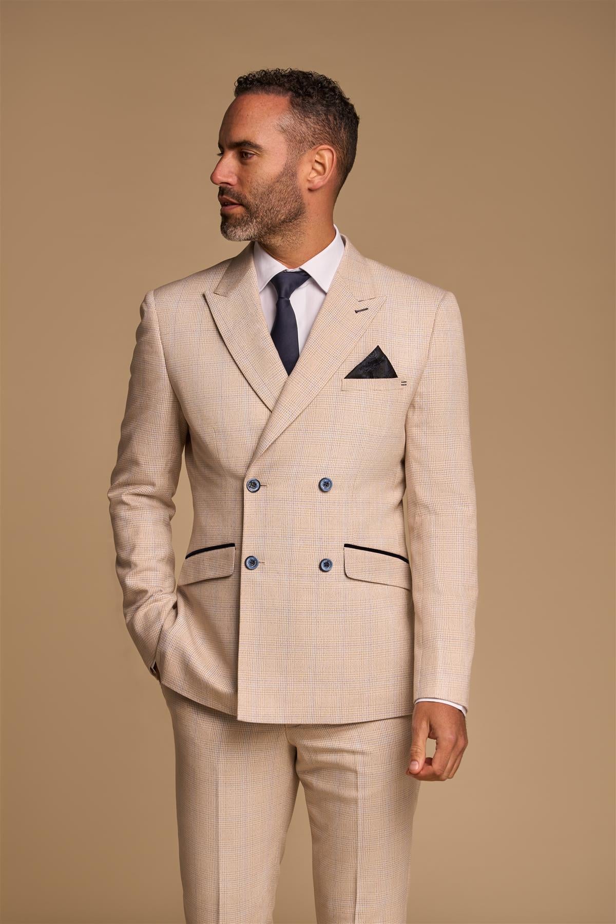 The model wears a size 38 Regular and is 6 foot 1.5 inches tall with a 38 inch chest, 32 inch waist and 15.5 inch collar.