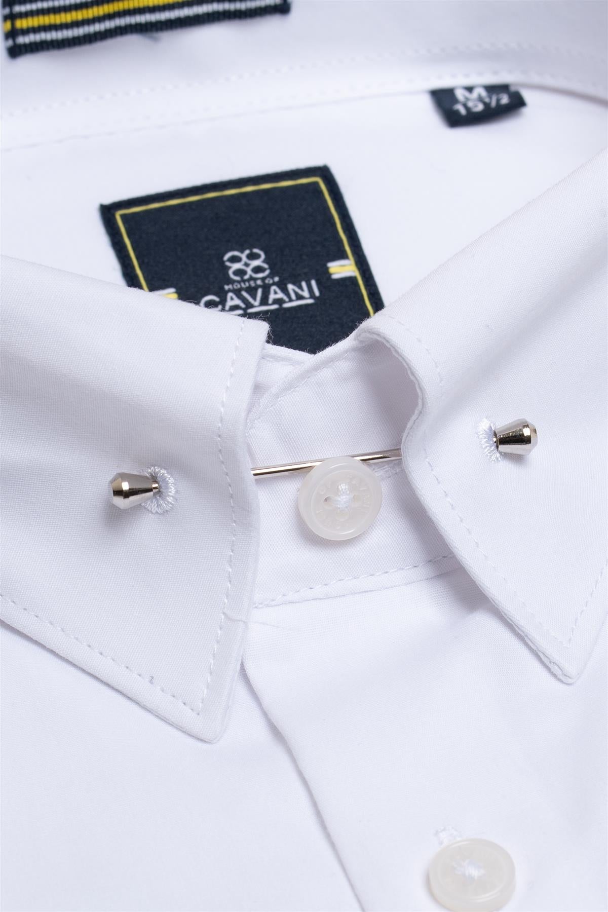 The model wears a size M and is 6 foot 2 inches tall with a 38 inch chest, 32 inch waist and 15.5 inch collar.