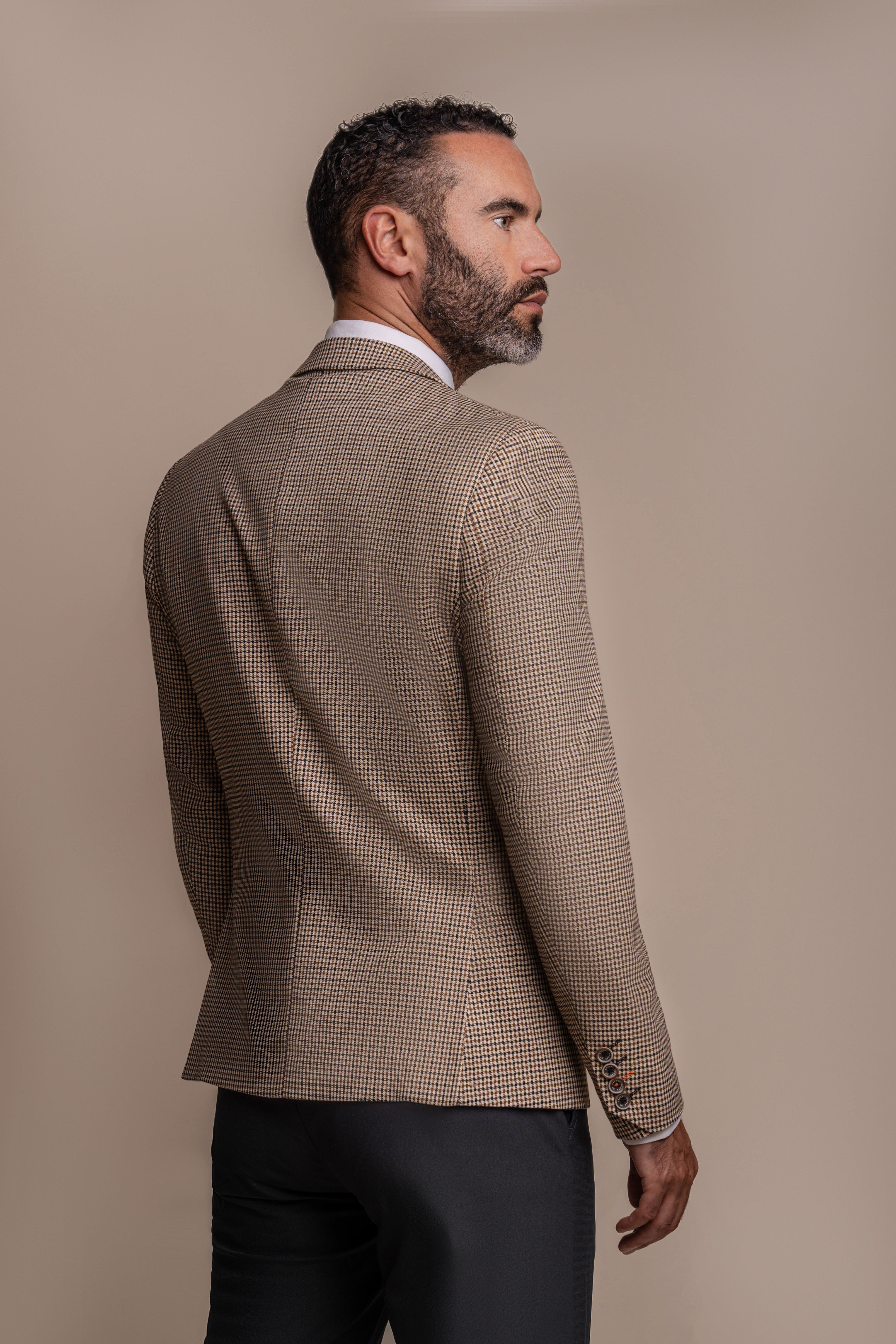 The Elwood Houndstooth Blazer paired with Reed Black Trousers delivers a refined mix of heritage and modern elegance. The bold houndstooth blazer brings timeless charm, while the tailored black trousers offer sleek contrast and versatility. Ideal for weddings or formal occasions, this ensemble is a perfect balance of classic and contemporary.