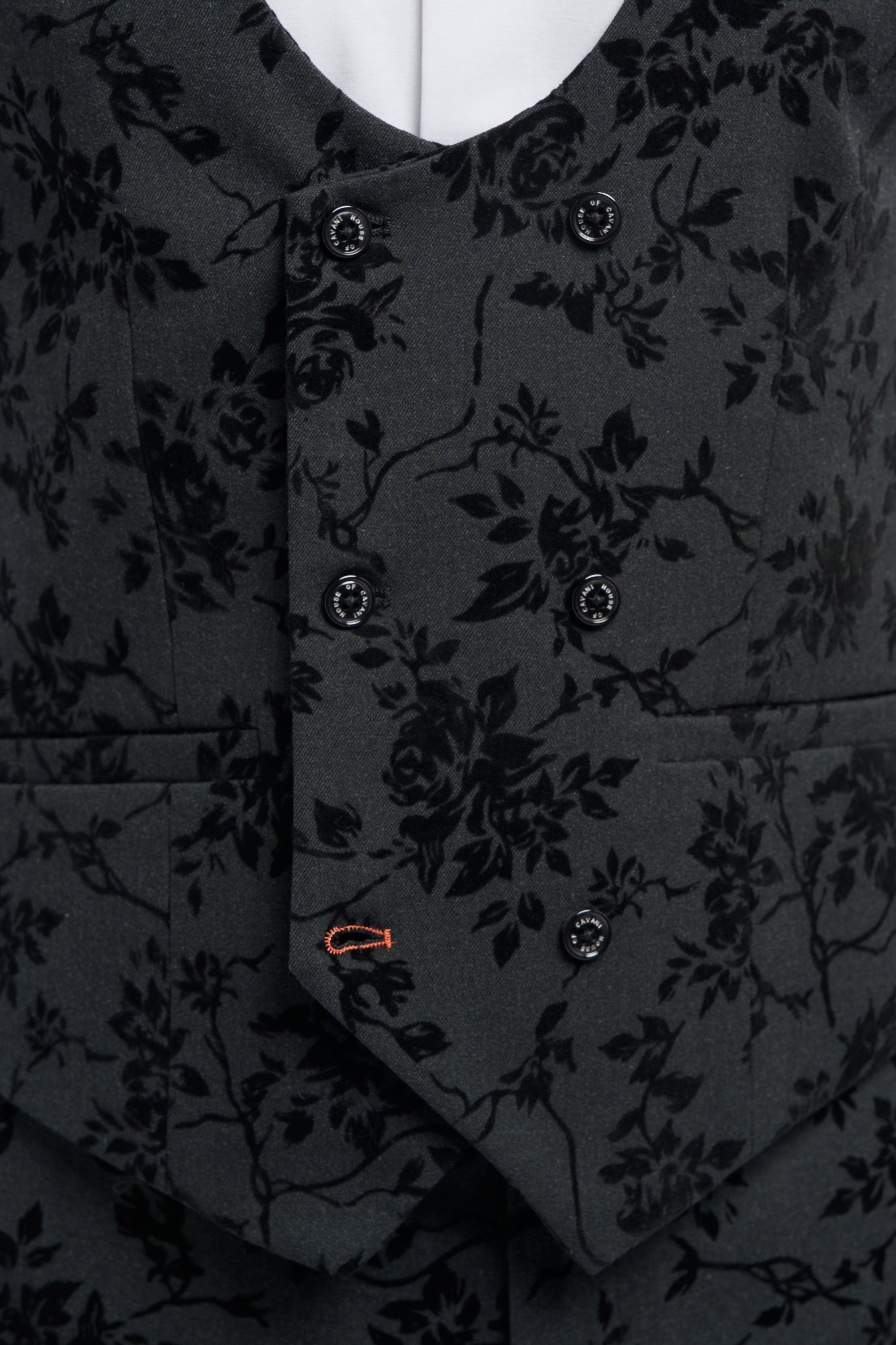 Command attention with the Georgi Black Floral Three Piece Suit, where bold design meets refined craftsmanship. The intricate floral pattern on black adds depth and drama, while its tailored fit and slight stretch provides comfort and versatility. Perfect for weddings or special occasions that demand distinct style.