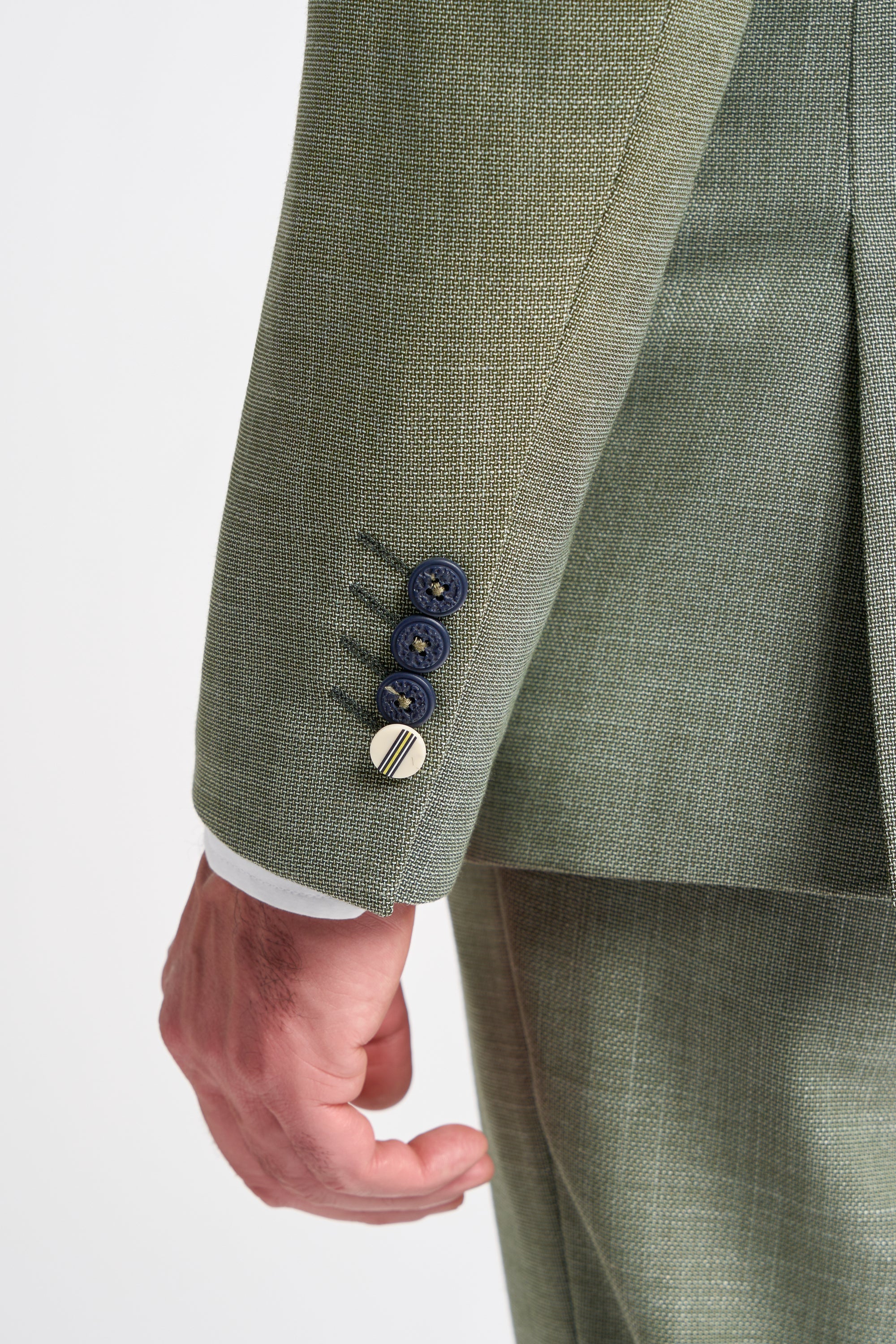 Each Miami sage three piece suit is lightweight, durable, and comfortable thanks to a luxurious mix of 75% polyester, 20% viscose, 3% tensil, and 2% linen. The subtle sage tone also makes it easy to match with a range of shirts, shoes and accessories, allowing you to adapt your look to any event or dress code.