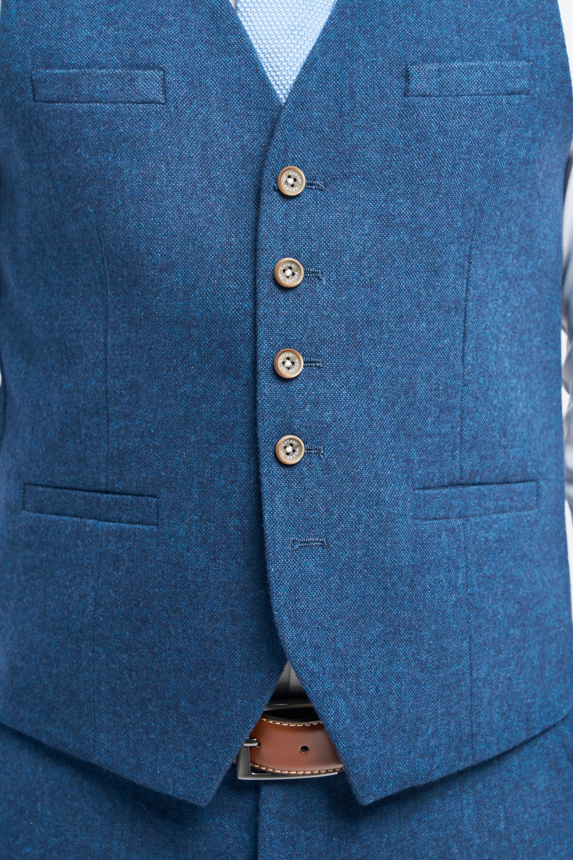 The Orson Blue Tweed Waistcoat features a refined blue tweed design, adding texture and class to formal or semi-formal outfits. Its slim fit and classic buttons create an elegant, timeless look. Perfect for weddings, business events, or special occasions.