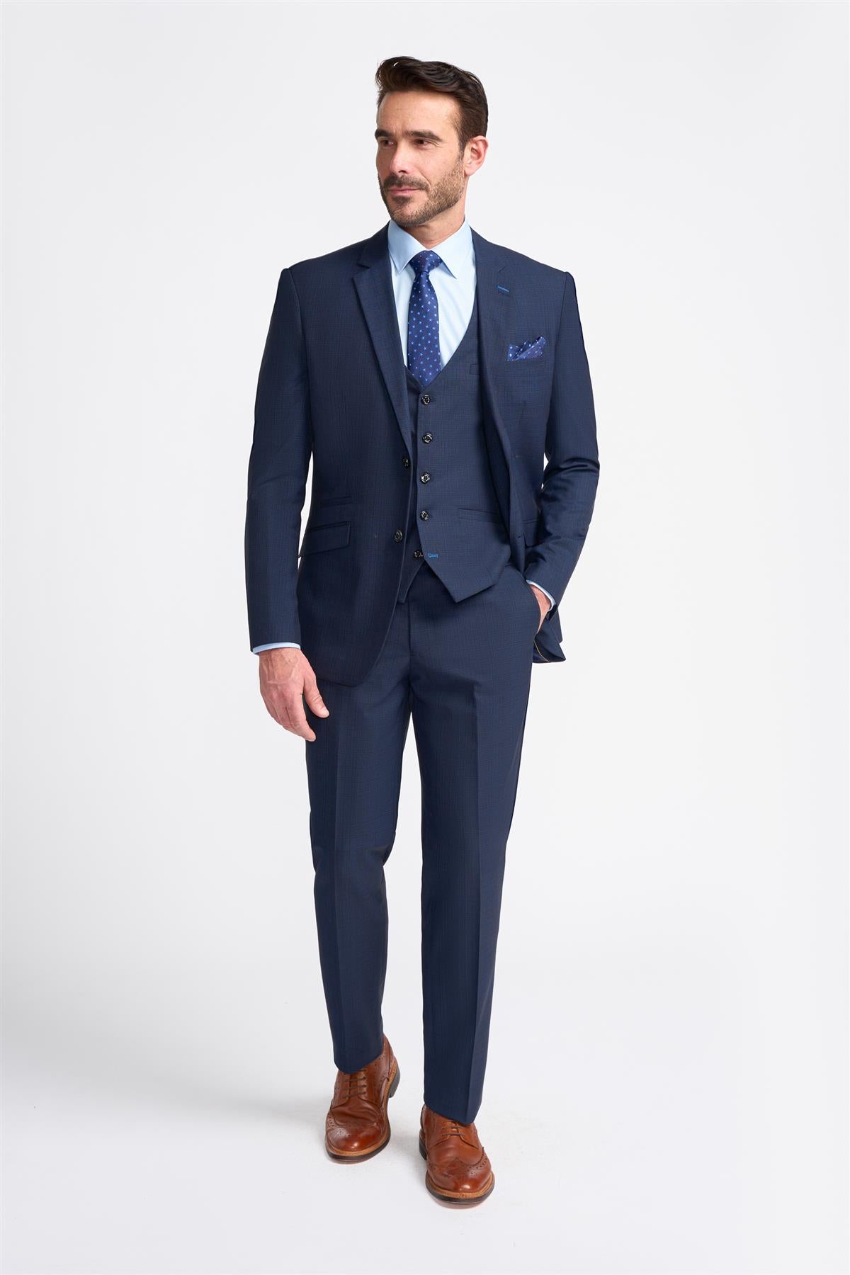 The Seeba Navy Blazer embodies timeless sophistication with its deep navy hue and impeccable fitting. Perfect for formal events and smart-casual occasions, it delivers effortless charm and a polished finish. A wardrobe essential for the modern gentleman who values classic elegance and versatile style.