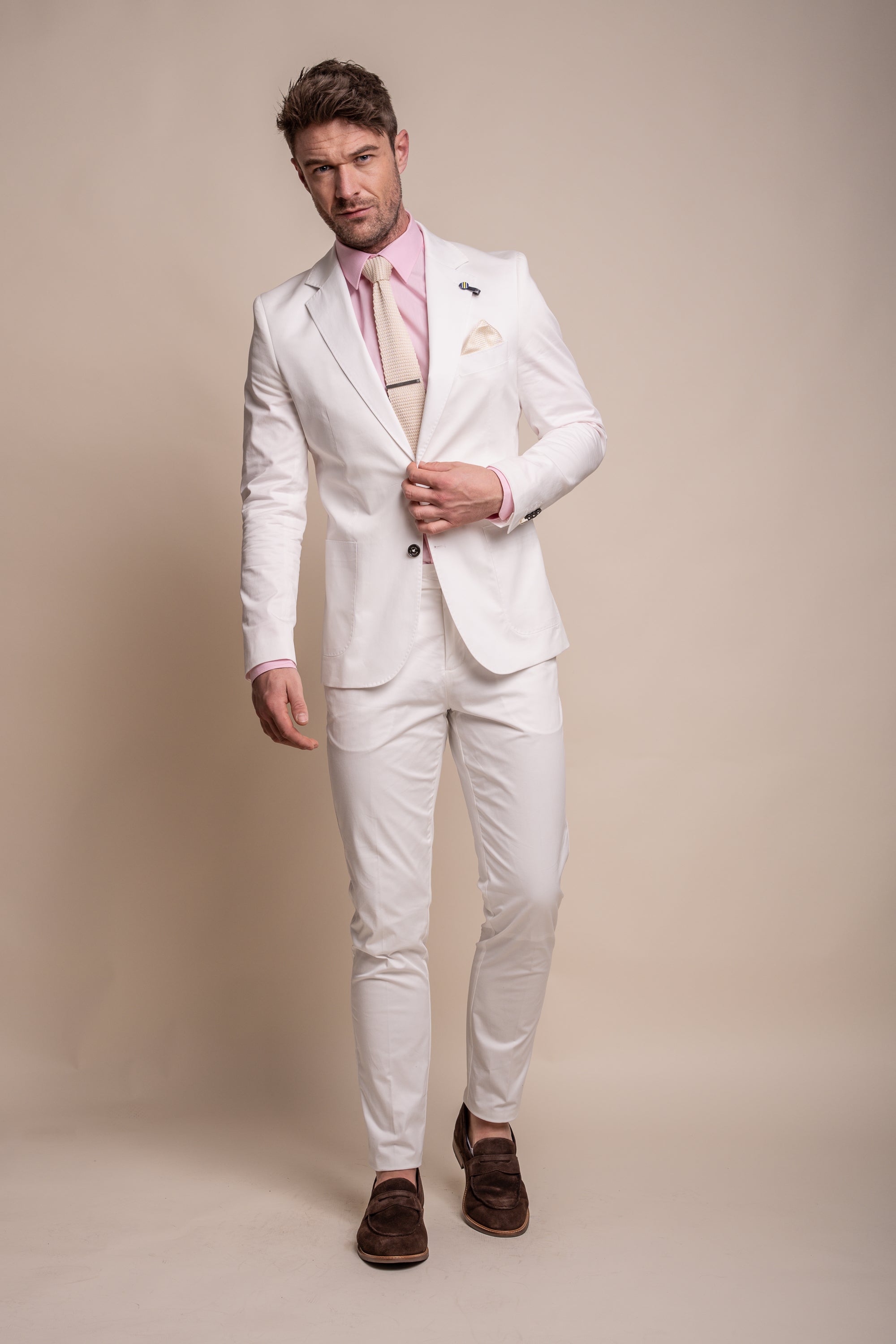 The model wears a size 38 Regular and is 6 foot 2 inches tall with a 38 inch chest, 32 inch waist and 15.5 inch collar.