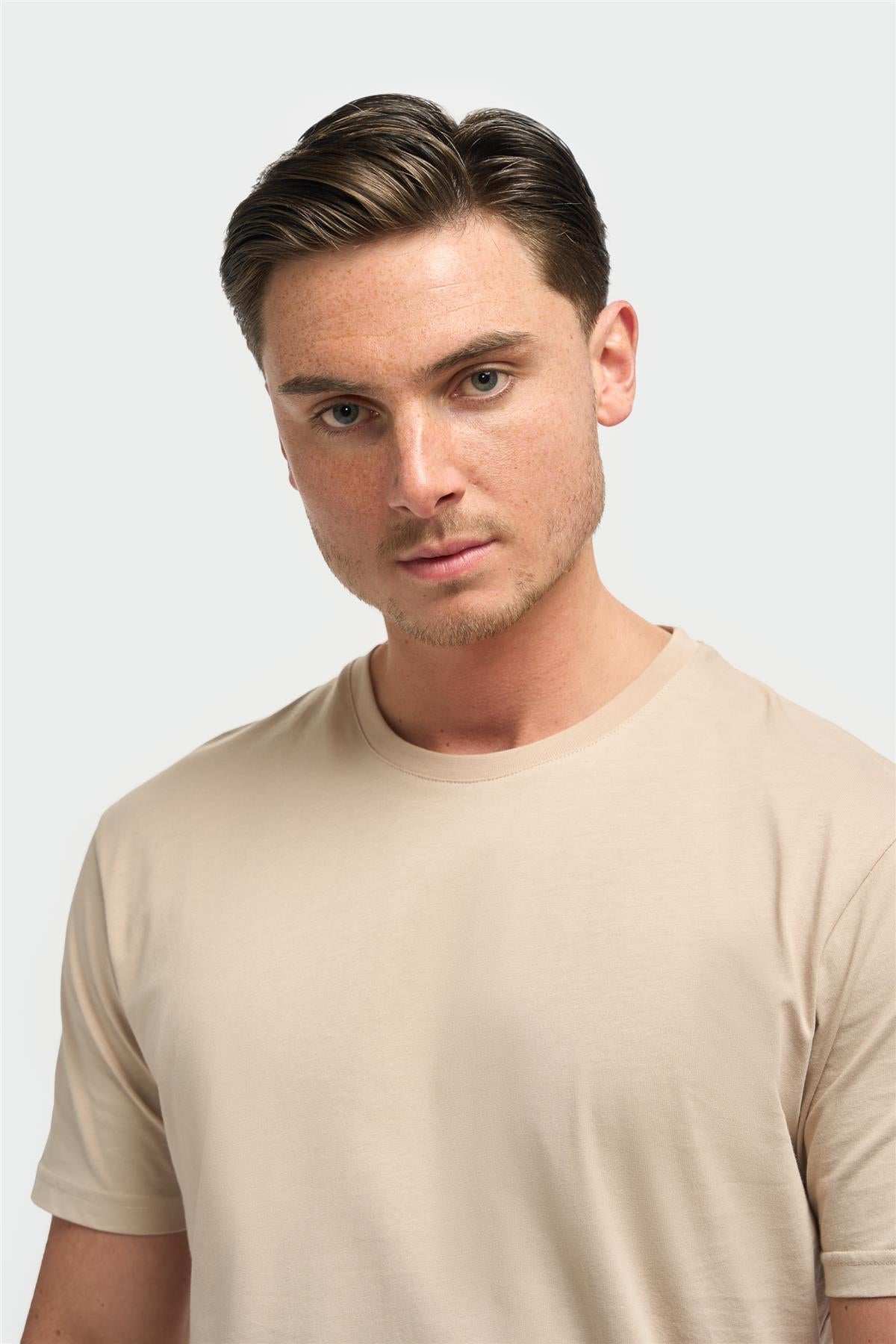 Sanchez Beige Pure Cotton Stretch Fit Crew Neck T-Shirt