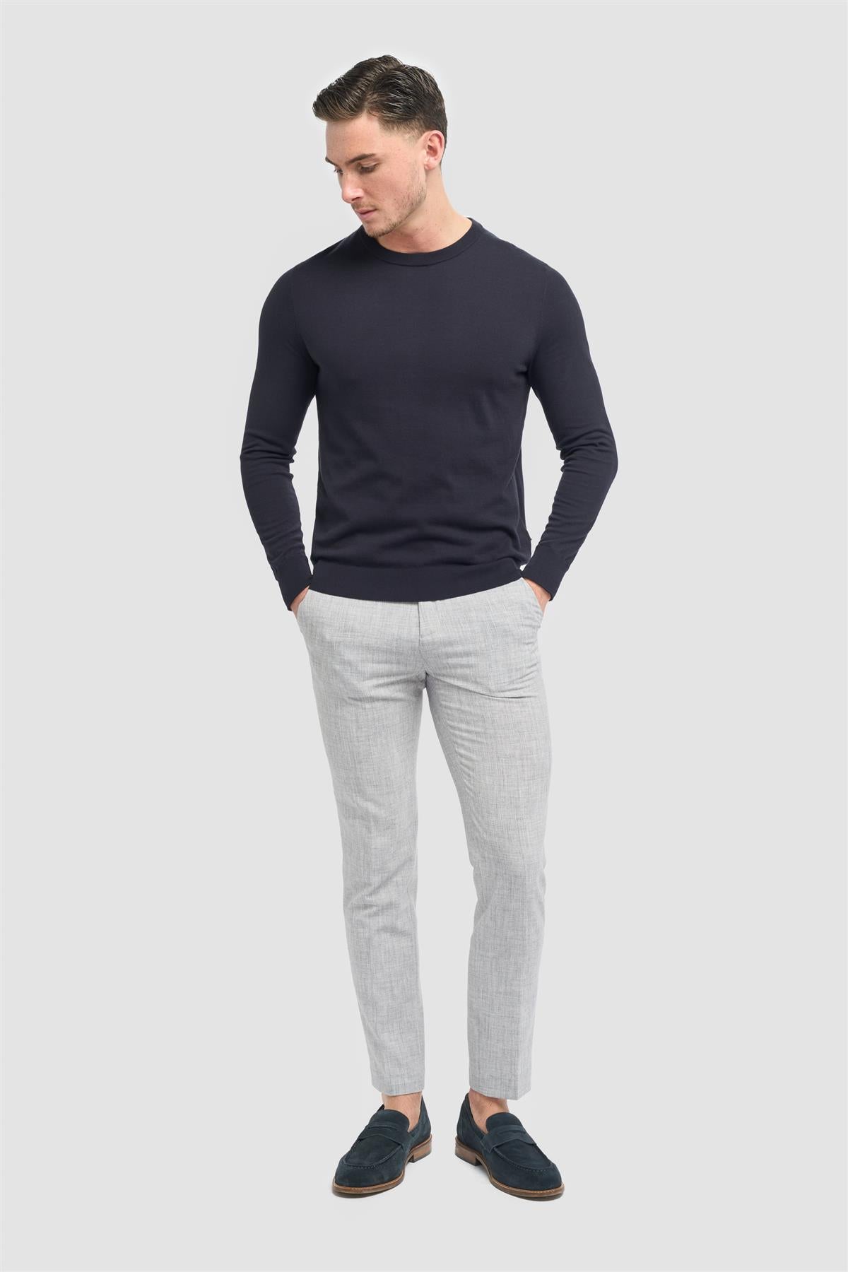 The Savio Lightweight Crew Neck Knit, available in Ecru, Sand, Navy, Aloe, and Aqua, offers a versatile and modern style that’s perfect for layering or wearing on its own. Its clean design makes it ideal for various casual and smart-casual looks. Crafted from 100% high twist cotton, it ensures softness, breathability, and durability, providing comfort and style throughout the day.