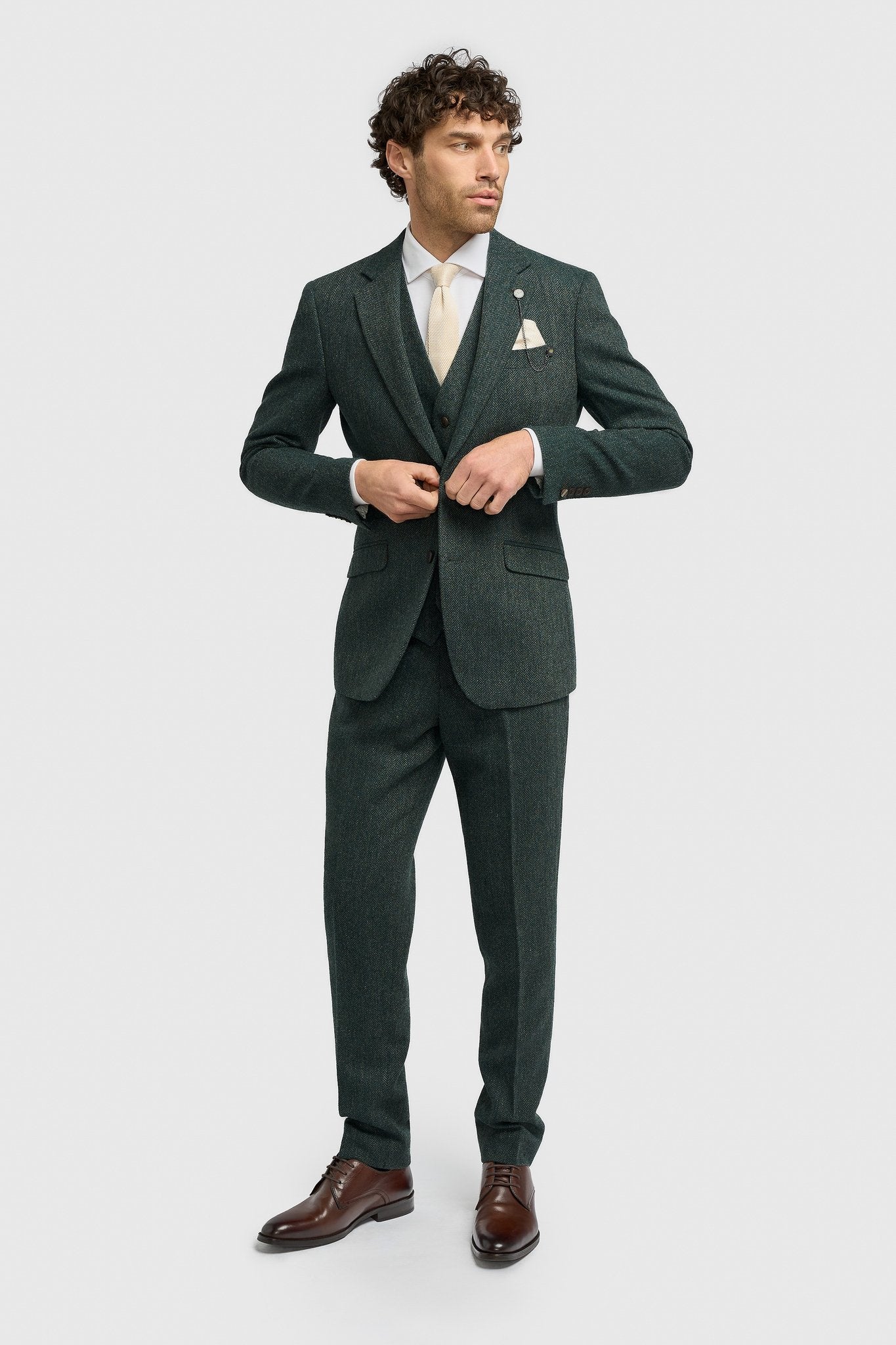 Elevate your wardrobe with the timeless sophistication of the Thomas Lush Olive Tweed Three Piece Suit. This suit offers the perfect balance of structure, comfort, and durability. Designed with classic tailoring in mind, it features a 2-button closure, a sharp notch lapel, and a single-breasted silhouette for a clean, refined look. Double vents at the back provide ease of movement and a flattering fit, whether you're heading to a formal occasion or upgrading your smart-casual ensemble. From boardroom meetings to evening events, the Thomas Lush Olive Three Piece Suit is a versatile staple that brings understated elegance to every setting.