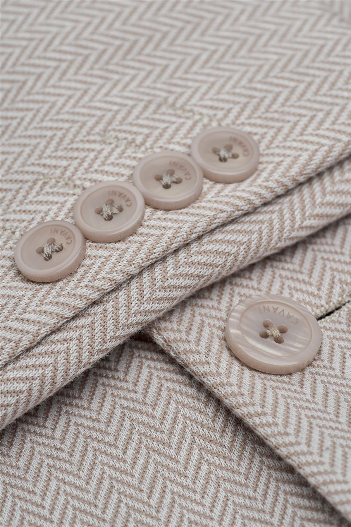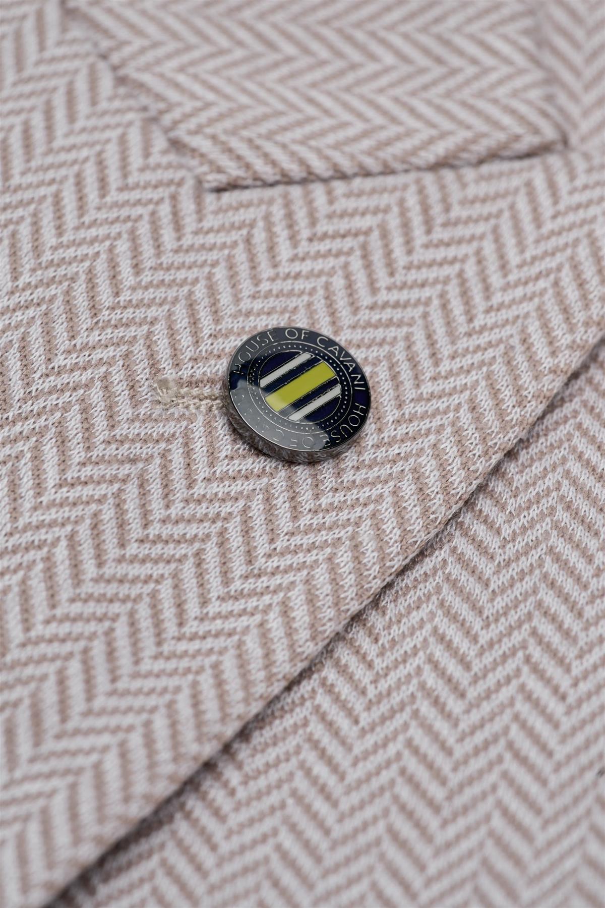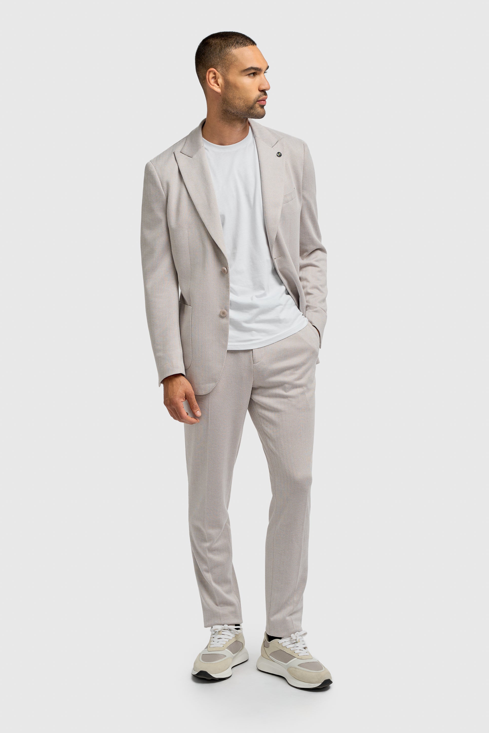 The Vasco Suit combines a soft, bi-stretch jersey fabric with a subtle herringbone texture, offering comfort, flexibility, and a clean, modern fit. The blazer features peak lapels, half lining, and patch pockets with Cavani detailing, creating a relaxed yet refined look.